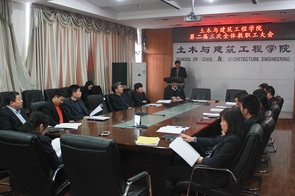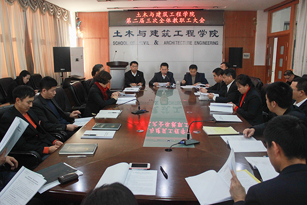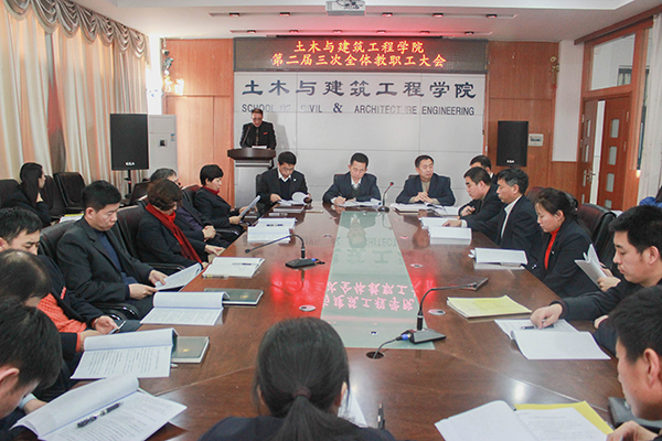 在本次大会上,土木与建筑工程学院院长武鹤同志做了《坚持内涵发展 为推动学校转型发展 建设特色鲜明的高水平应用技术大学而努力奋斗》的院长工作报告。学院党委书记王会军同志代表班子成员做了《述职报告》。学院工会李剑同志代表学院做了《院务公开》报告。