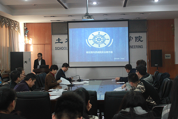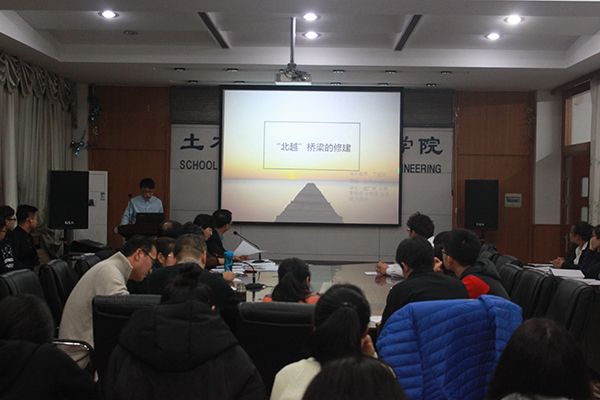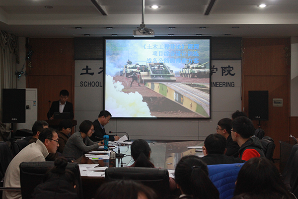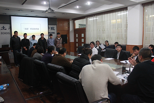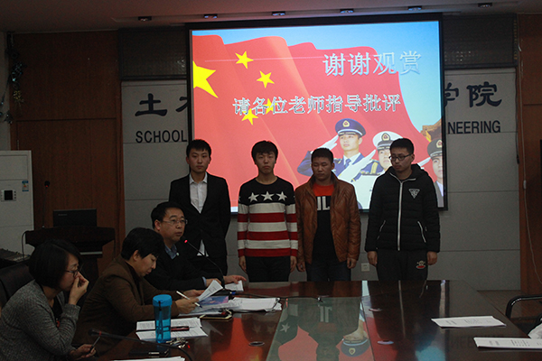 按照《土木工程导论》课程改革要求,我院土木工程专业2015级1、2班学生分别于2015年12月17日和18日下午在土木与建筑工程学院418报告厅举行了《土木工程导论》课程团队式项目综合设计训练分组答辩会,两个班共11组学生进行了综合设计项目答辩汇报。答辩会由武鹤院长主持,导论课教师团队教师作为答辩评委参加了答辩会。