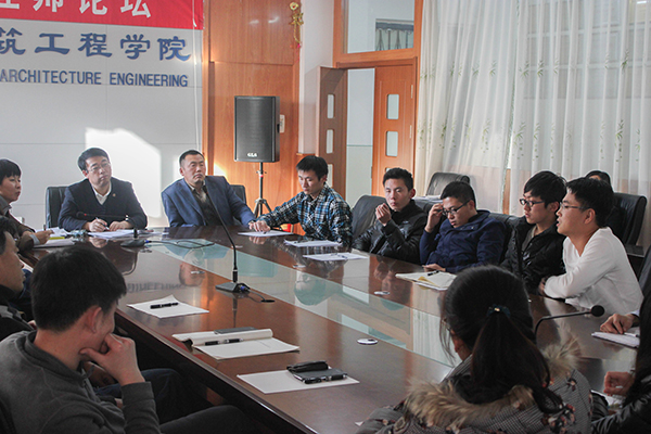 2014年11月27日,土木与建筑工程学院关于“土木工程专业2015版人才培养方案修订学生座谈会”在E418会议室举行。院长武鹤、副院长王丽荣、张家平以及各专业方向学科带头人与三十余名大四毕业生代表进行了亲切的交流。