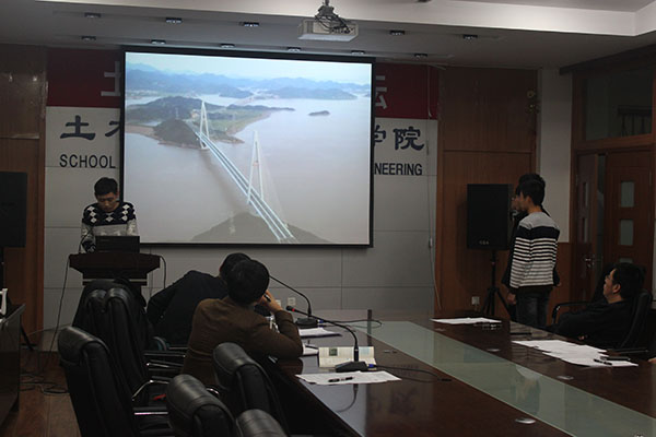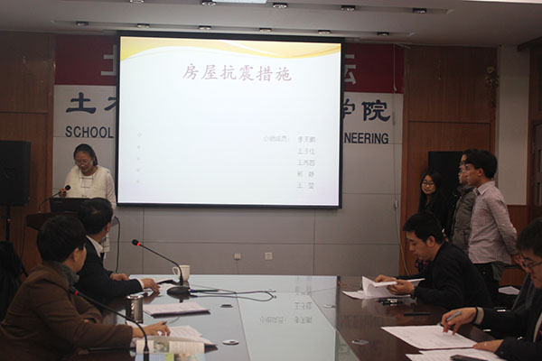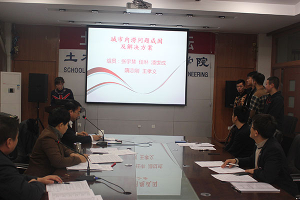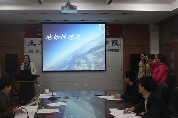 按照《土木工程导论》课程改革要求,2014年12月20日下午13:30,我院土木工程专业2014级1、2班学生在土木与建筑工程学院418会议室举行了《土木工程导论》课程分组项目综合设计训练答辩会,两个班共11组学生顺利完成综合设计项目答辩汇报。答辩会由武鹤院长主持,导论课教师团队部分教师作为答辩评委参加了答辩会。