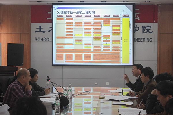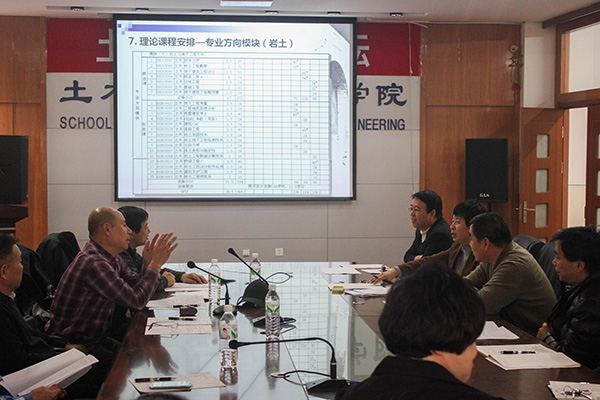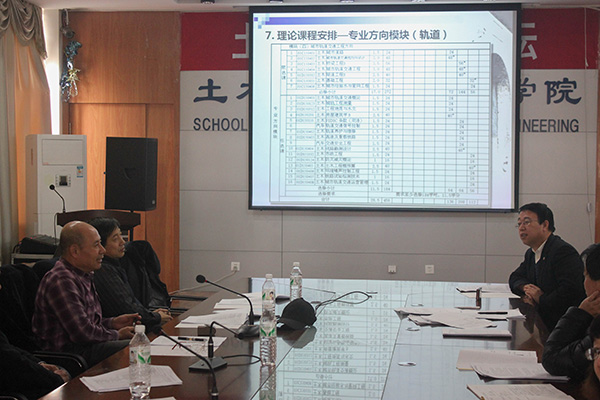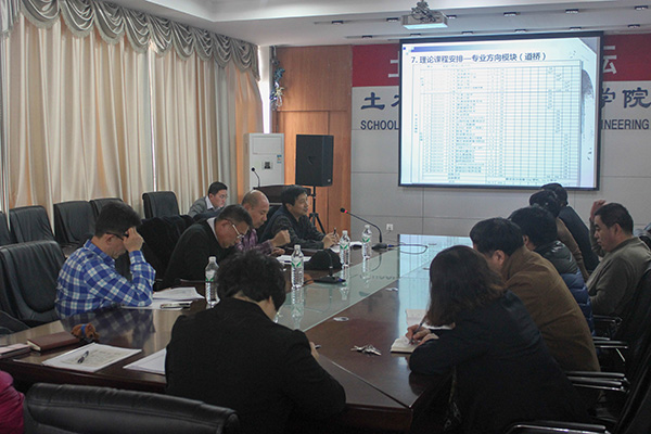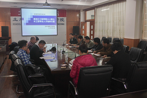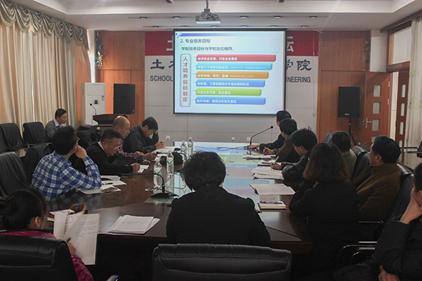 会议首先由武鹤院长对土木工程专业2015版人才培养方案进行了汇报,主要包括:人才需求分析、专业培养目标、毕业要求、课程体系、专业特色等内容。专家们首先对培养方案的编制进行了全面的了解,对方案编制的系统性及科学性给予了高度评价,同时对培养方案的培养目标和毕业要求的确定、课程设置、学时分配、教学进程等内容提出了建设性建议,如某些专业性较强的课程(如深水基础施工,施工降水)等实际应用性很强的教学内容,应该在教学过程中给予加强;对应用热点的结构检测与加固,应该在培养方案中更加突出;在满足正常教学要求的同时,加强特色教学内容,以突出办学特色;新时期培养学生尤其应该注意吃苦精神的教育等,同时对我校土木工程专业增设城市轨道工程方向给予充分肯定,一致认为我校的土木工程专业建设始终走在省属高校的前列。