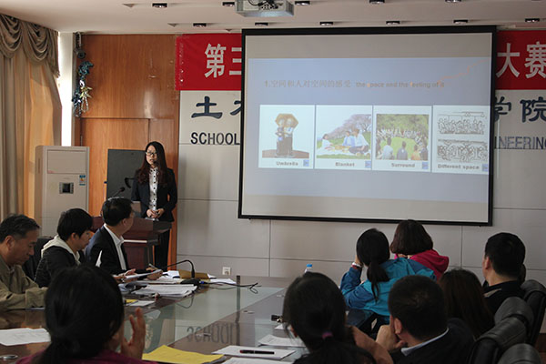 为提高我院双语教学质量,促进教师间相互学习、交流,激励青年教师开展教育教学活动,同时也给教师提供一个展示教学技能的平台,土木与建筑工程学院于2015年5月6日举行了第三届双语教学大赛。