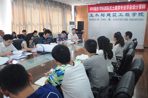 2015年6月16日下午,土木与建筑工程学院毕业设计大课题组毕业答辩会在E418会议室举行。经过师生团队的辛勤付出和不懈努力,历时三个多月的2015届“多学科团队式建筑类专业毕业设计”圆满完成了任务。参加课题组的学生、指导教师以及来自相关领域的专家到会。土木与建筑工程学院武鹤院长主持答辩会。