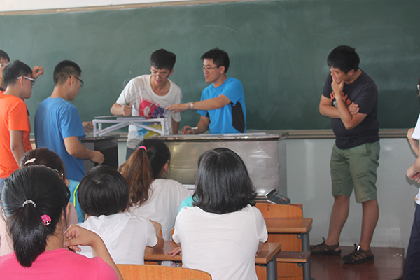 按照《土木工程导论》课程改革的要求,我院土木工程专业2013-1、2班(一表)学生,3~5组成一个设计团队,根据课程考核要求,设计出不同纸质结构,然后进行加载比赛,比赛成绩作为课程学习成果之一。2014年7月14日下午,在土木楼506教室,同学们作为参赛选手,完成了结构设计、结构制作和结构加载试验等竞赛内容。任课教师武鹤、葛琪等部分教师及辅导员参加了此次竞赛。