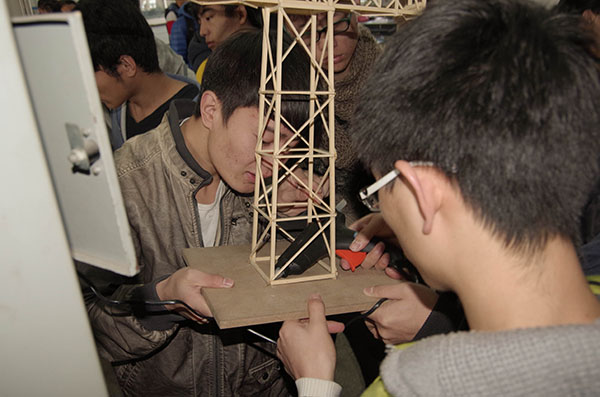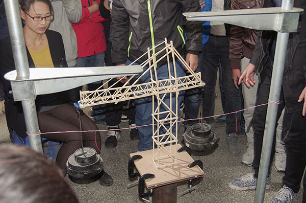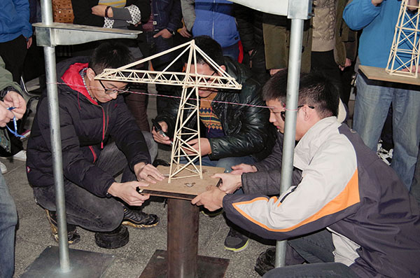 经过模型称重及连接、模型尺寸测量、模型加载及结构变形监测等一系列紧张、激烈的角逐,共有6支代表队脱颖而出捧走了一等奖的桂冠,大赛同时产生了12个二等奖和12个三等奖。