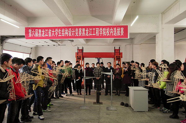 11月8日,由黑龙江工程学院教务处主办、土木学院承办的2014年第六届黑龙江省大学生结构设计竞赛黑龙江工程学院校内选拔赛在土木楼实训中心圆满落下帷幕。参加此次选拔赛的评委有土木学院院长武鹤、机电学院副院长苗淑杰、材料学院莫淑华老师、土木学院副院长王丽荣以及土木学院张旭宏老师。