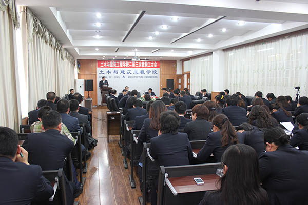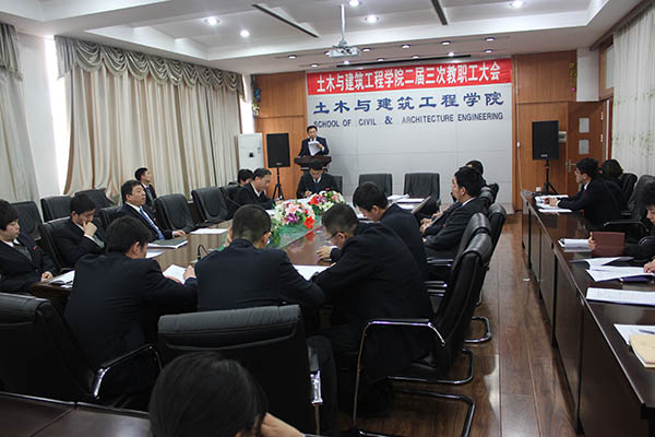 2014年3月19日下午 ,土木与建筑工程学院第二届全体教职工大会第三次会议在土木楼418会议室隆重召开。学院102名教职工参加大会,会议由土木学院分党委书记王会军同志主持。