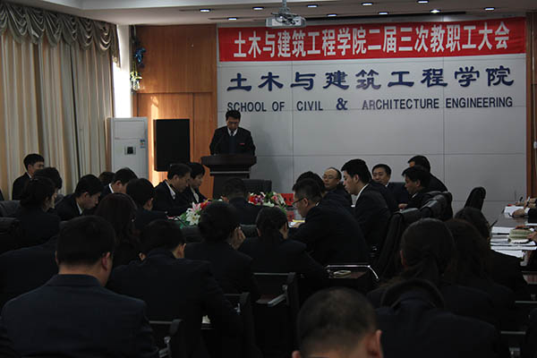 报告同时客观地分析了我院存在的主要问题,明确了发展的奋斗目标,并详细阐明了2014年的主要工作。会议还听取了王丽荣副院长作的《土木与建筑工程学院院务公开报告》。报告主要就工会经费使用情况和学院评奖评优工作向与会人员作了详细汇报。