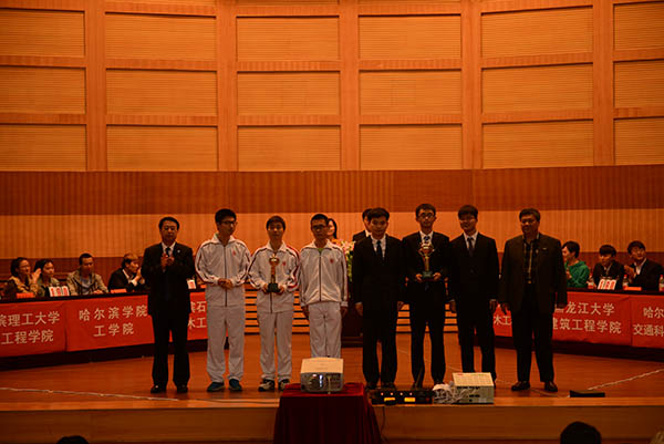 开幕式后,土木知识竞赛决赛正式开始。大赛分必答、抢答、风险和案例分析四个环节进行,根据各环节累积得分决出优胜队伍。经过激烈角逐,最终,东北林业大学和哈尔滨理工大学两支代表队荣获本次比赛的一等奖,哈尔滨工业大学、哈尔滨工程大学、齐齐哈尔大学和黑龙江工程学院四支代表队荣获二等奖,黑龙江大学、黑龙江科技大学、哈尔滨学院、哈尔滨石油学院、黑龙江东方学院、哈尔滨华德学院六支代表队荣获三等奖。