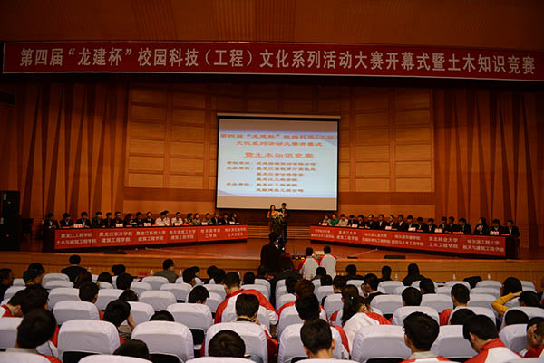 最后,土木与建筑工程学院院长武鹤宣读了第四届“龙建杯”校园科技(工程)文化系列活动的竞赛内容和参加土木知识竞赛的高校代表队。