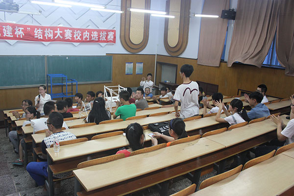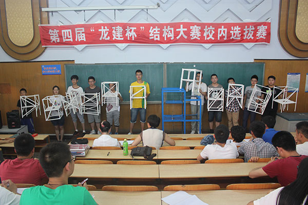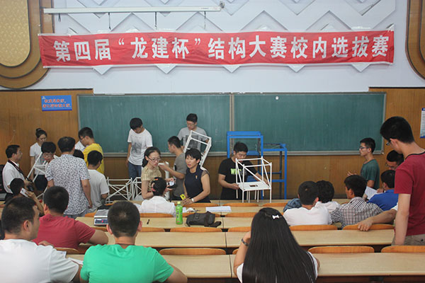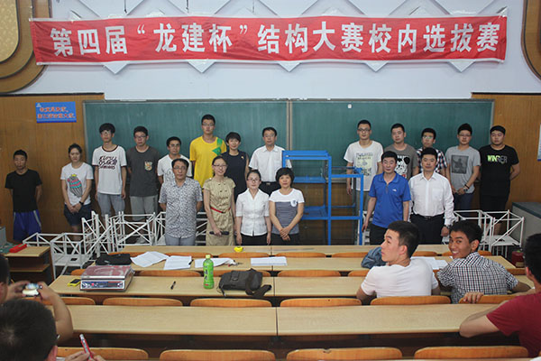 经过一个多月的精心筹备,第四届“龙建杯”结构设计大赛校内选拔赛于6月25日在土木工程楼301举行,并取得圆满成功。参加此次选拔赛的评委有土木学院院长武鹤、副院长王丽荣、教师张旭宏、张王乐元、李成河、王国峰、李剑。