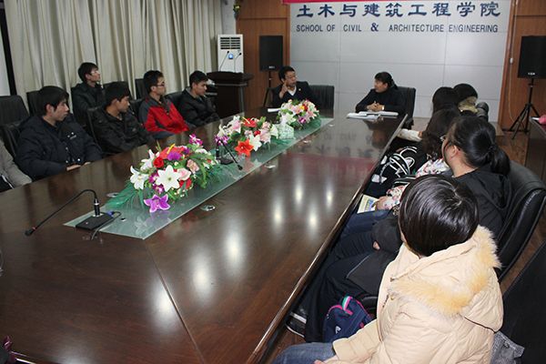 本周二,土木学院的武院长和王院长与2013级土木工程专业20名学生代表进行了座谈。座谈过程中,同学们畅所欲言,直接明了地说出了学习与生活中存在的难题。两位领导十分关心同学们,并十分亲切地帮助同学们解决难题,直接给出解决方案。同学们对解决措施十分满意。这样一来,我们学习会更加高效,生活更加便利。