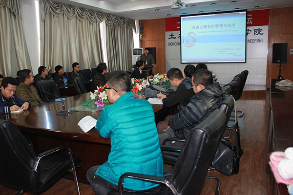 11月28日黑龙江高速公路管理局王大庆校友重返母校,在土木楼418会议室,就我省高速公路的养护与管理作了专题讲座。本次讲座由土木学院院长武鹤主持,土木学院部分教师和道桥专业的全体学生很荣幸聆听王大庆校友的精彩讲座。