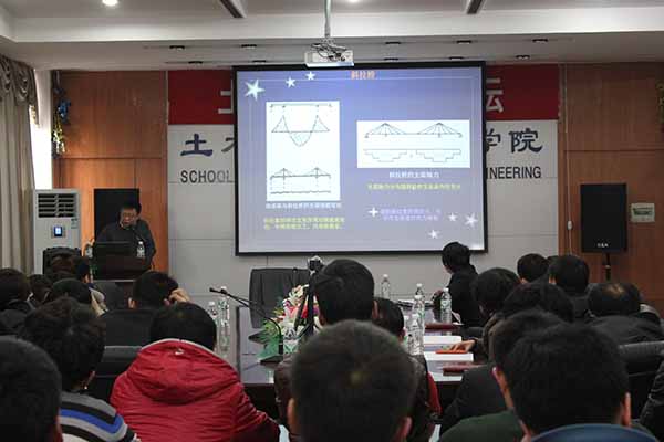 齐林主任曾是哈尔滨绕城高速公路四方台斜拉桥及大跨度三股线大桥的主设计师和设计代表,齐甘、齐泰公路嫩江大桥的设计负责人,并被交通部评选为“交通部业务能手”,是我省在大跨度斜拉桥设计和施工方面最有经验的桥梁专家。本次讲座,齐林主任以四方台斜拉桥设计为例,着重介绍了大跨度斜拉桥的概念设计、构造及计算。讲座深入浅出的介绍了大跨度斜拉桥设计的一般过程,并就斜拉桥设计过程中涉及的斜拉桥体系选择、成桥内力确定、索塔锚固区设计、调索方法等关键问题结合工程实际做了详细的介绍,为我院土木工程(道桥)专业即将进行斜拉桥设计的毕业生提供了很好的理论和实践参考。