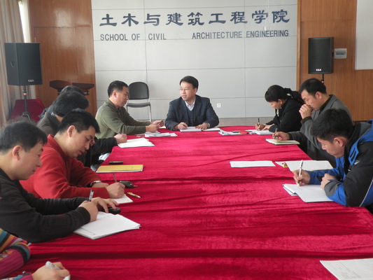 3月9日下午,土木与建筑工程学院召开领导班子和各系(中心)主任、书记例会,会上武鹤院长要求各系要认真学习申书记在务虚会的讲话和2011年学校的工作要点,并对2011年开学后近期工作做了具体要求。