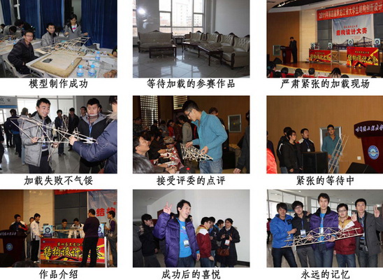 紧张的比赛隆重的结束了,我院的学生带回了无比的喜悦和丰硕的成果。再一次向省里证明了我校的实力,也给学校交了一份满意的答卷。我们有理由相信通过一年的努力,在明年的结构设计大赛中,我校还会取得更好的成绩!