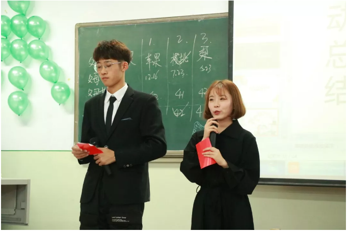 接下来就到了气氛活跃的游戏环节,此次游戏的形式仍然是是令人激动的击鼓传花,花落到的同学依次上台分享发生在自己身边让人动容的故事,表达自己对身边人的感恩之情。下一个游戏极速逃脱则更为刺激,失败的一方挑选一个惩罚方式进行惩罚,而获胜的一方将有关父母的一些信息写到黑板上,并现场连线各自父母确认答案正误,这一环节充满了欢声笑语也逐渐唤起同学们对父母的思念。