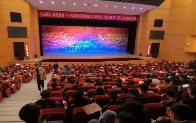 二零一九年十一月三日晚,土木学院三百二十余名师生井然有序的走进哈尔滨工程大学启航剧场观赏了音乐舞蹈史诗《黑龙江“四大精神”颂》。