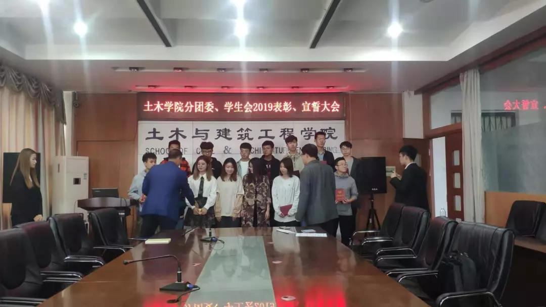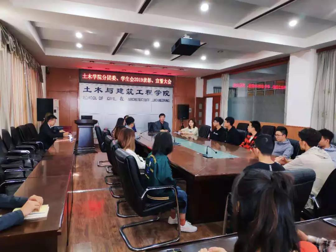 土木与建筑工程学院分团委于9月26日中午在土木楼418会议室举行了土木学院分团委、学生会2019表彰、宣誓大会。我院对此次大会给予高度重视,会议由周子琪老师主持,党委书记郭树东、党委副书记王宇鹏出席了会议。
