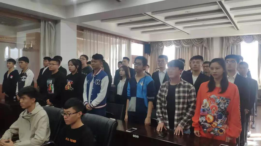 大会第二项,新一届2019分团委、学生会成员集体宣誓。旨在让学生干部充分的意识到身上将肩负的使命与责任,要全心全意为同学服务,做师生友谊的桥梁,做同学们心中的榜样。