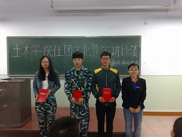 峥嵘九十余载,我们与中国梦同行。5月4日晚,由土木与建筑工程学院分团委主办,红色理论社团协办的2015年土木与建筑工程学院五四青年主题演讲比赛在土木楼506室成功举办。此次主题演讲比赛中,意在让同学们比拼口才,展示风采的过程中体味五四精神。土木与建筑工程学院于杰老师,各系带班党员代表,社团负责人代表担任本次比赛的嘉宾和评委。