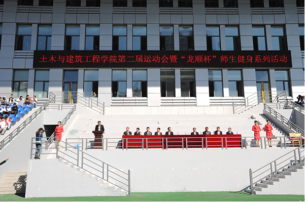 金秋时节,天高气爽,2014年9月24日下午,土木与建筑工程学院在学校新建落成的体育场成功举办了第二届体育运动大会。院领导班子悉数莅临,武鹤院长、龙顺建筑公司李书奇总经理分别作了大会致词。校公共体育教研部为此次运动会提供了裁判员、学院工会组织教工运动员代表队、学院学生会体育部精心组织了学生运动员、全体辅导员组织了学生观众队伍,共同见证我院学生用体育的魅力、运动的激情、振奋的精神展现团结一心、奋力向前的生动局面。
