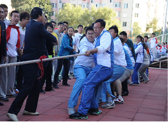 2014年9月24日下午,土木与建筑工程学院在学校新建落成的体育场成功举办了“龙顺杯”师生拔河比赛。院领导班子悉数莅临,武鹤院长、龙顺建筑公司李书奇总经理分别作了致词。领导蓬勃有力的殷切希望,校友至诚感恩的语重心长给大会开幕式注入了浓墨重彩的一笔。看拔河比赛,号子喧天,教工队伍倾尽全力,荣誉而战,虽败犹荣,学生(道桥系•院内选拔冠军队伍)队伍土木精神,永不言弃,决战紫巅,龙顺队伍企业文化, 争当上游,王者风范,胜败已经不再重要,土木学院五大系部和龙顺的校友们,用他们依然焕发着青春与力量的身影为现场所有的学生们上了一堂不一样的专业课:敢于担当,永不言弃的精神必将融入学生的血脉。传承在继续,掌声在证明。