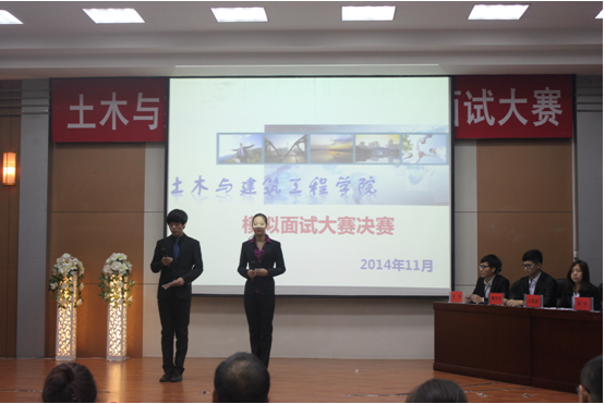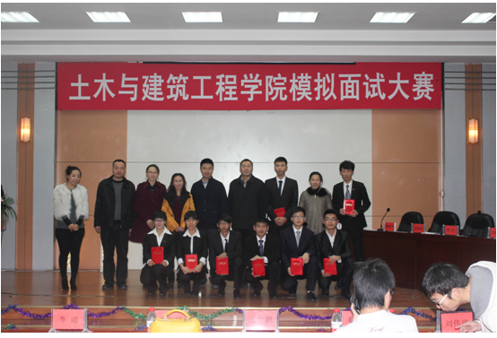 2014年11月12日晚18:00时,由土木学院就业指导办公室主办的学院模拟面试大赛总决赛在专家公寓四楼会议室圆满落下帷幕。出席本次大赛的嘉宾评委有校招生就业处副处长蔡昌淼、土木学院分党委副书记王宇鹏、学生党支部书记刘伟涛以及相关辅导员老师。