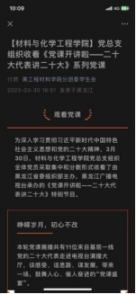 为深入学习贯彻习近平新时代中国特色社会主义思想和党的二十大精神,3月25日——3月31日,我校组织广大师生党员收听收看《榜样7》《党课开讲啦——二十大代表讲二十大》活动。通过组织收看,在全校掀起了学党课、学榜样的热潮,党的二十大“好声音”传递到每名党员干部的脑海中,有力推动“党课开讲啦”活动“声”入人心,让党的二十大精神在高校落地生根,开花结果。